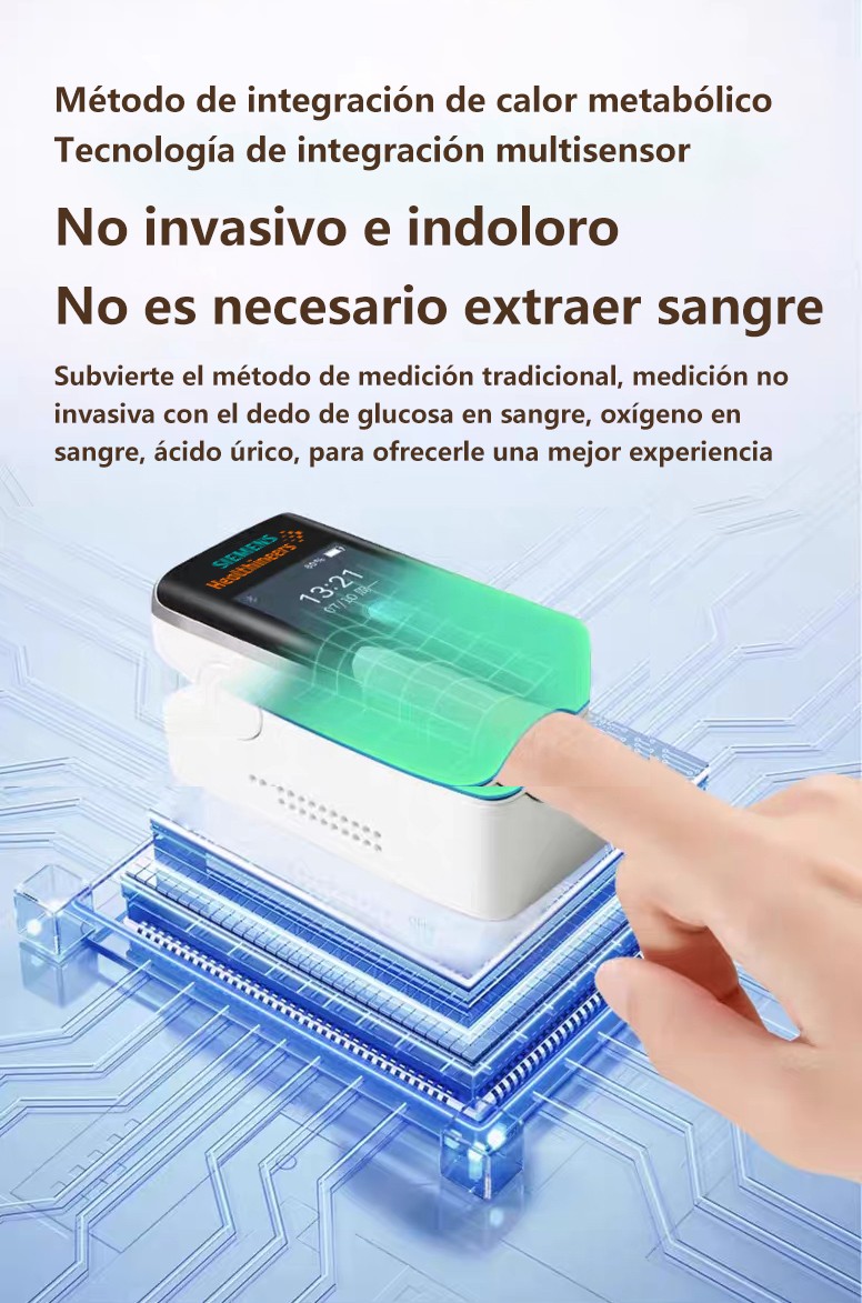 El primer medidor de glucosa en sangre no invasivo multifuncional de Siemens no solo puede medir de forma no invasiva el azúcar en sangre, la presión arterial, el oxígeno en sangre y el ácido úrico, sino que también tiene una función de tratamiento con láser original.