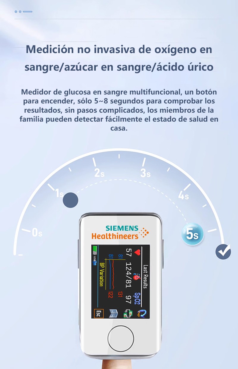 Siemens Healthineers, líder mundial en tecnología médica con sede en Alemania, mejora la salud mediante innovación tecnológica. En 2025 lanza su nuevo glucómetro no invasivo, que ofrece mediciones rápidas, sin dolor y sin pinchazos, con registro de datos, análisis de tendencias y alertas inteligentes. Gracias a su desempeño, es ampliamente reconocido por expertos y usuarios.